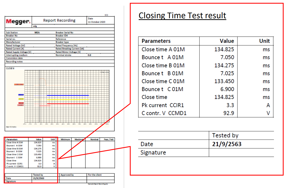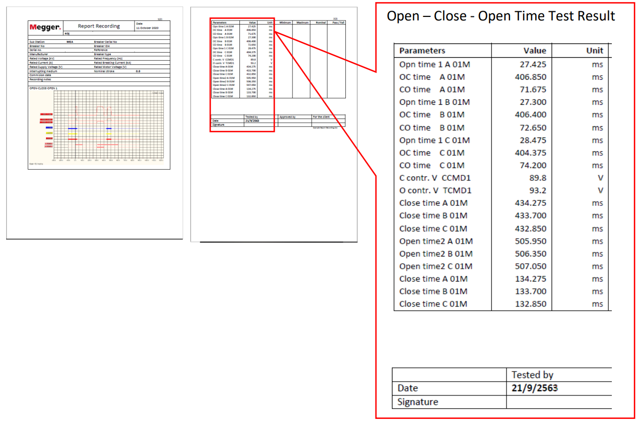 จะเห็นได้ว่าการทดสอบ การวัดค่า Operating Timing ของ Circuit Breaker ที่อยู่ในสถานีไฟฟ้าแบบ AIS, GIS หรือ GCB ด้วยเทคนิคการวัดแบบ DualGround และใช้อุปกรณ์พิเศษ ที่ชื่อว่า Ferrite kit นั้น สามารถทำให้การวัดทำได้อย่างรวดเร็ว ปลอดภัย และ ได้ผลการทดสอบที่มีความแม่นยำ