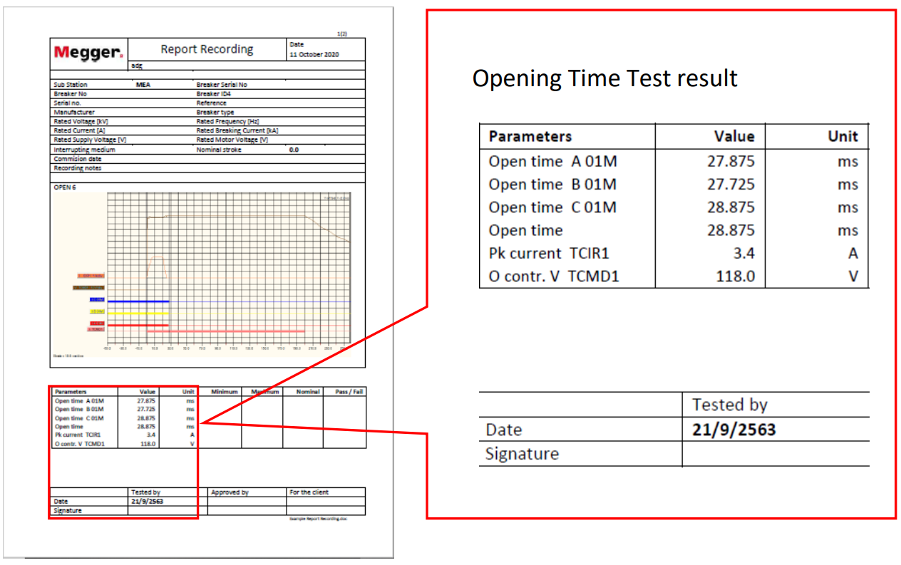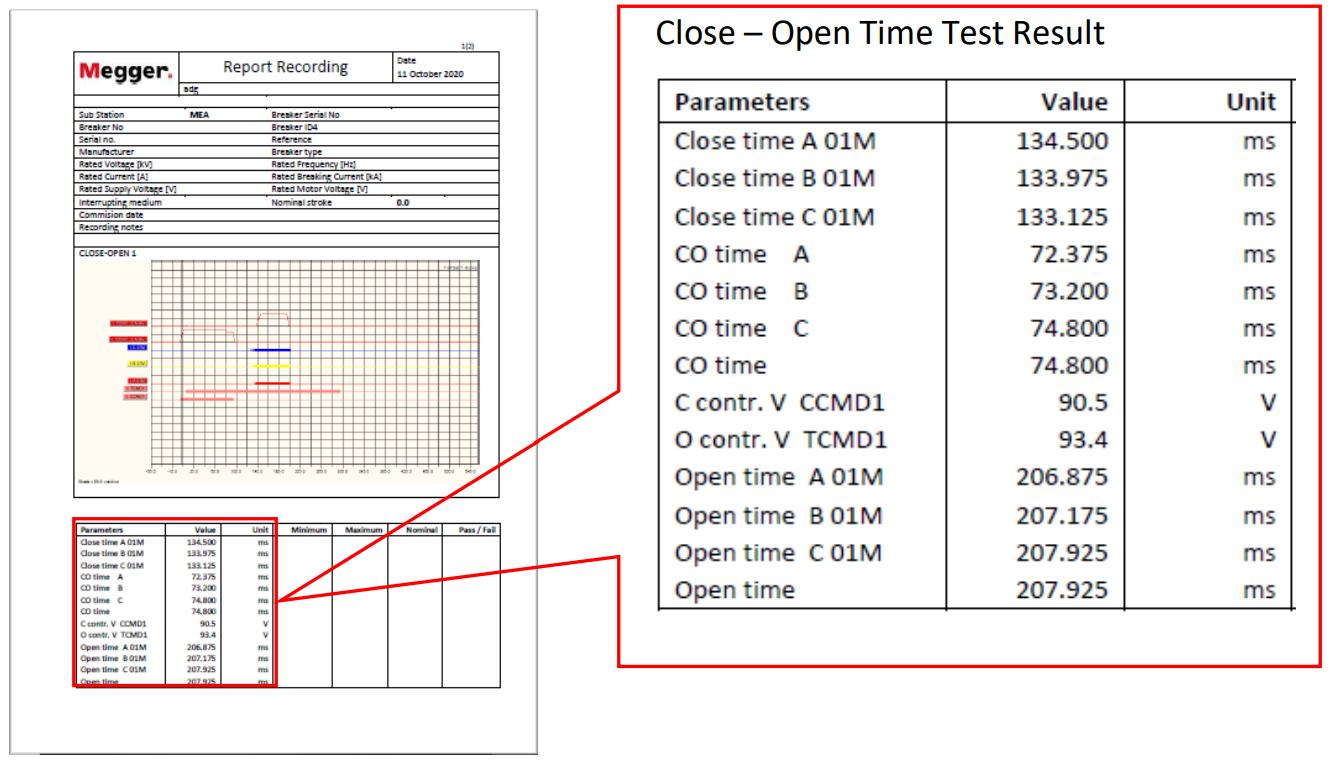 DCM ของ Megger เพื่อทดสอบ operating time ของ GIS ได้ แต่รูปร่างและลักษณะของ