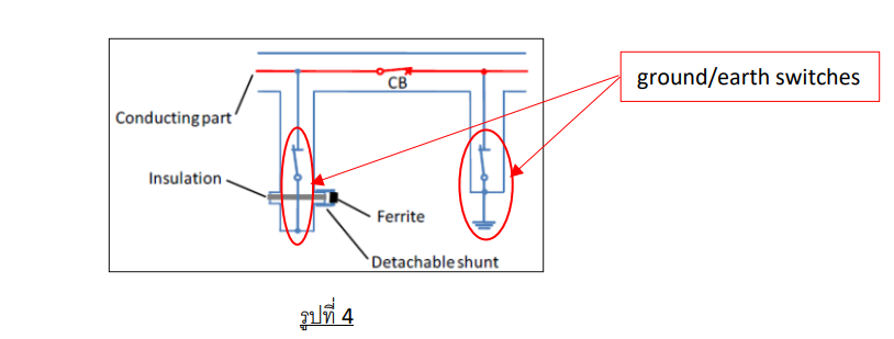จะถูกต่อลงกราวด์ทั้งสองด้าน โดยใช้ส่วนที่เรียกกว่า ground/earth switches ดังตัวอย่างในรูปที่ 4